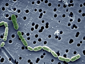 Nella prima foto si vedono le botti di legno e due serbatoi con coperchio galleggiante. Uno è riempito con il vino della colmatura bisettimanale, l’altro contiene l’ultimo vino di pressatura del quale non so ancora se lo aggiungerò alla massa prima del imbottigliamento. L’immagine di Oenococcus oeni al microscopio è tratta invece dall’articolo ononimo di Wikipedia.